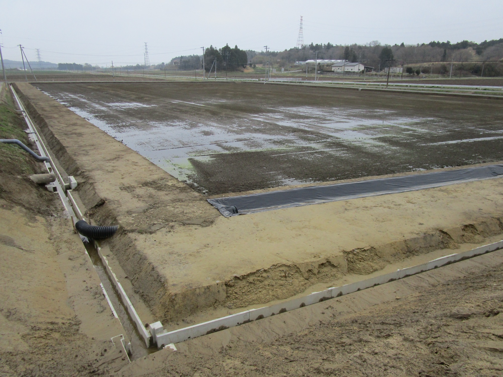 担い手の負担を少なくするため圃場の整備には、「幅広畦畔」や「暗渠排水」を取り入れ、又 パイプラインと自動給水栓を設置する等により、これまで負担の多かった、草刈り作業の機械化、水管理の軽減化を図る様々な工夫を盛り込み、施工されています。